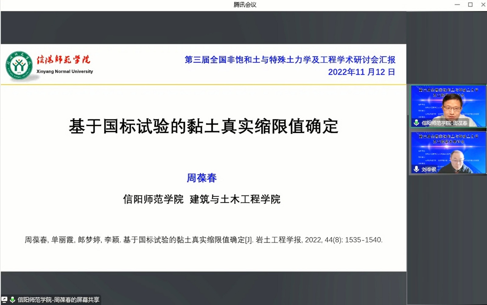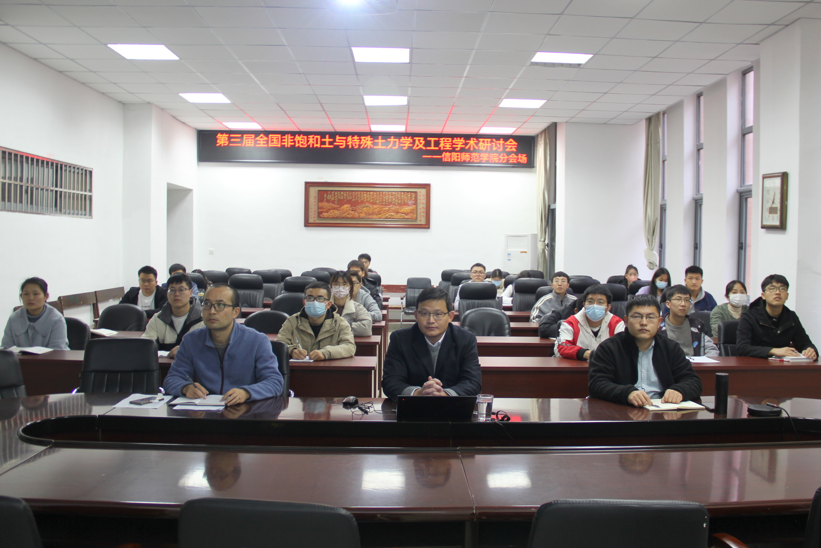 公司在8827太阳集团官网会议室设立了信阳师范公司分会场,分会场参会师生50余人。会议邀请8827太阳集团官网经理周葆春教授作了题为“基于国标试验的黏土真实缩限值确定”的特邀报告。