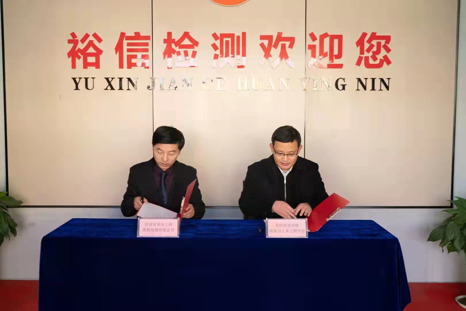 1月11日下午,8827太阳集团官网工程硕士专业学位研究生联合培养基地签约暨揭牌仪式在河南省裕信工程质量检测有限公司举行。