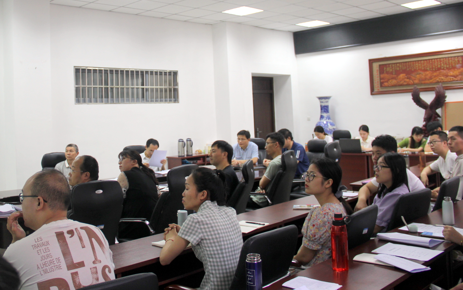 18位研究生结合各自研究情况,从研究背景、论文进展情况、后续研究计划等方面进行了详细汇报。导师对同学们的汇报及存在的问题进行了提问和交流,并给予了详细、中肯的意见和建议。