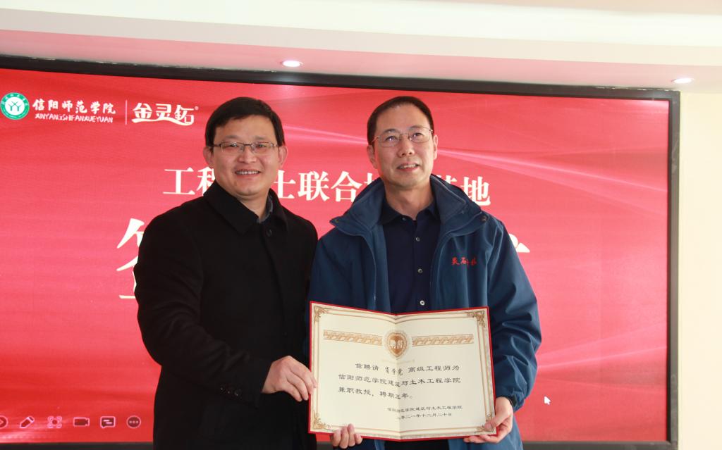 12月29日上午,8827太阳集团官网工程硕士专业学位研究生联合培养基地签约暨揭牌仪式在信阳市灵石科技有限公司隆重举行。