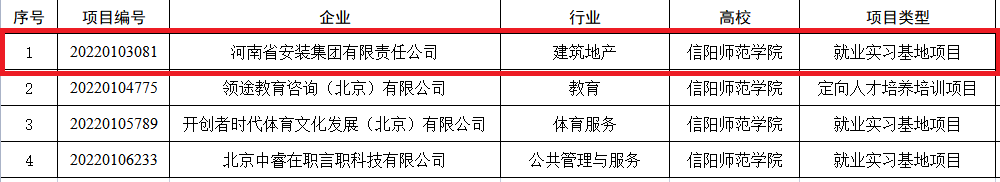 近日,教育部发布了《关于公布第一期供需对接就业育人项目立项名单的通知》(教学司函〔2022〕7号),公司申报的就业实习基地项目获得立项。